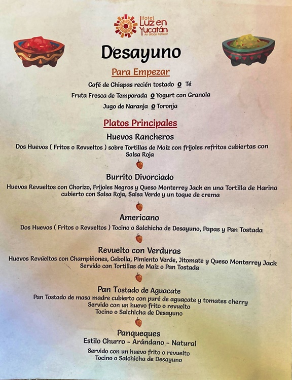 A welcome addition to the services available at the Luz en Yucatán is their included breakfast! It was nice to be able to just walk down from our room for brekkie!