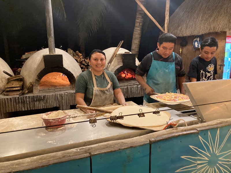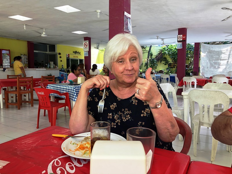After enjoying the pool to cool off from the heat of the day, we celebrated our farewell to Uaymitun dinner at another fav, Amaro, with Bob & Pat! As usual we enjoyed Pollo Xcatic followed by Cafe Maya made by Victor! This time, with an erstwhile assistant, he was able to perform a 4 chaffing dish pour!